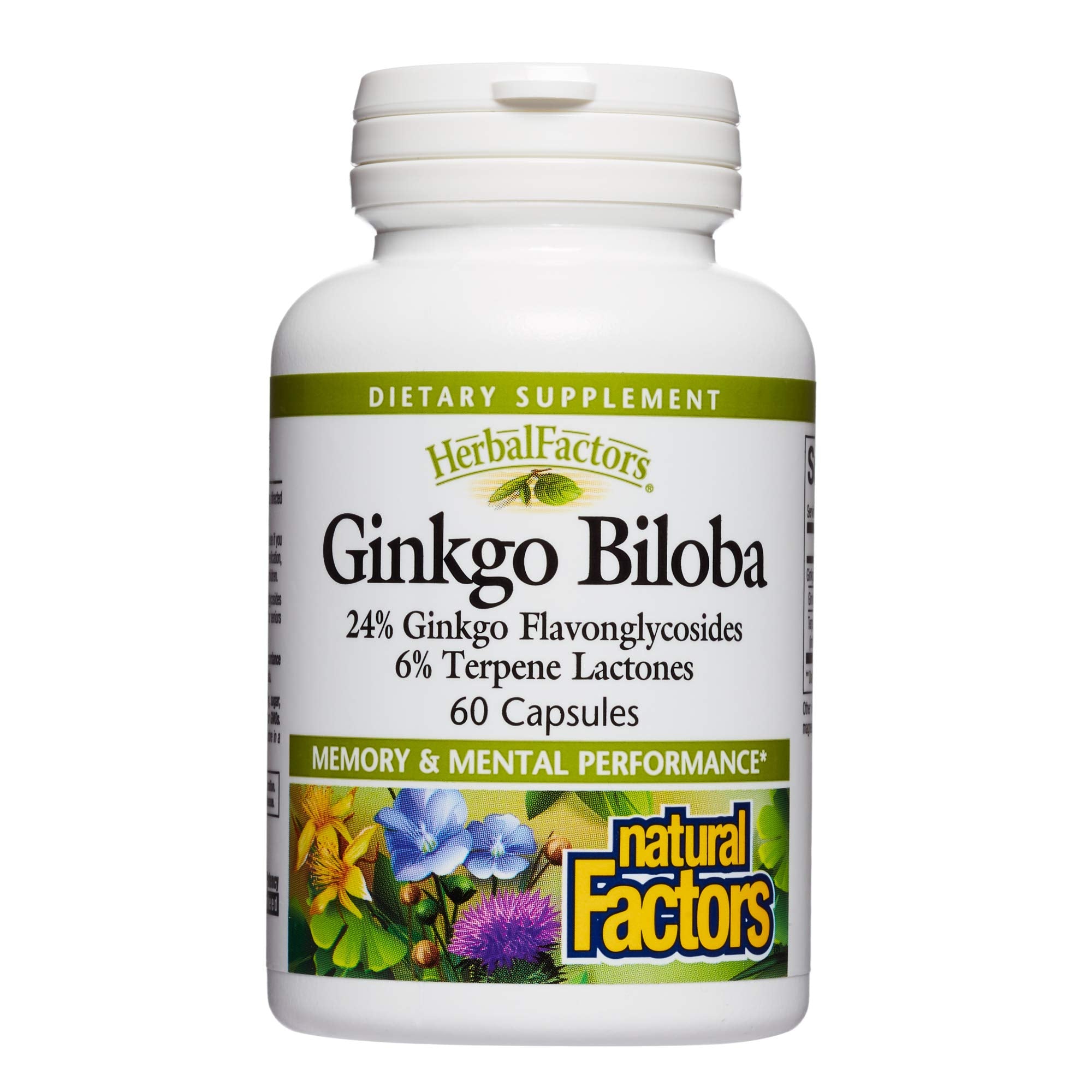 .Overview.Ginkgo biloba in European studies has shown to increase blood flow to the brain and extremities, helping to improve memory and mental sharpness. Ginkgo may be helpful for circulation problems, especially intermittent claudication, and vertigo and tinnitus, if it is of vascular origin...Medicinal Ingredients.Each Capsule Contains: .Ginkgo biloba Standardized 50:1 Extract (leaf) 60 mg.Ginkgo flavone glycosides (24%) 14.4 mg.Terpene lactones (6%) 3.6 mg.Non-Medicinal Ingredients.Rice powder, gelatin capsule (gelatin, purified water), vegetable grade magnesium stearate (lubricant)..Suggested Use.Enhances memory and promotes healthy cognitive function in an aging population..Advanced Info.European studies have shown that ginkgo increases blood flow to the brain and extremities, helping to improve memory and mental sharpness. Ginkgo flavone glycosides are a balanced group of bioflavonoids primarily responsible for ginkgo's ability to inhibit platelet aggregation (stickiness) and its antioxidant activity...Terpene lactones (ginkgolides and bilobalide) improve circulation, inhibit platelet activating factor (PAF) and protect nerve cells. Too much PAF causes platelets to clump together, and is associated with nerve cell damage...Herbal help for circulation and memory..Increases blood flow to the brain and extremities..Protects nerve cells..Ginkgo flavone glycosides are a balanced group of bioflavonoids primarily responsible for ginkgo's ability to inhibit platelet aggregation (stickiness) and its antioxidant activity..Protects nerve cells.