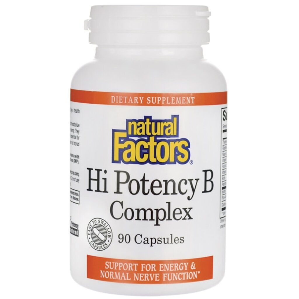 PROMOTES INCREASED ENERGY: The B vitamins in Hi Potency B Complex work together to metabolize carbohydrates, fats, and proteins, which contributes to an increased energy production level in the body..BALANCED HEALTH: The B Vitamins included in Natural Factors Hi Potency B Complex also support a healthy nervous system and mood, and are essential for healthy skin, hair and vision..LOCAL, ORGANIC, AND NON-GMO: Because Natural Factors Farms are certified organic, we don't pollute the earth with pesticides and chemical fertilizers. We grow true species non-hybridized, non-GMO seeds, including many open-pollinated varieties. Growing locally also helps reduce the carbon emissions from overseas transportation, and keep jobs in the community..JUST THE RIGHT SIZE: We believe we need to be big enough to do it right. We are one of the only nutritional companies to have our own organic farms, our own extraction, encapsulation, and production facilities, our own labs and research facilities. We are also one of the few branded manufacturers of nutraceuticals in North America to have our own softgel encapsulation facility..WHERE GREAT HEALTH BEGINS: Today, Natural Factors is one of the largest manufacturers of nutritional products in North America. But our origins reach back to the 1950s, and right from day one, we've always been fully committed to making products right. We are not a public company with shareholders to impress. Instead, we care about impressing you.