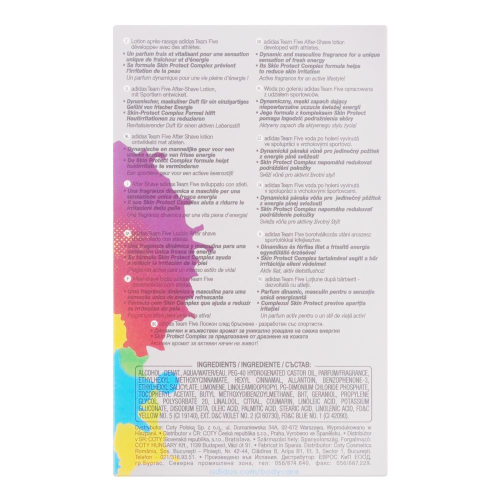 Fragrance: "Team Five" suggests that this after-shave lotion may have a fragrance associated with a sporting or active lifestyle. It's intended to offer a fresh and invigorating scent that can complement your grooming routine.