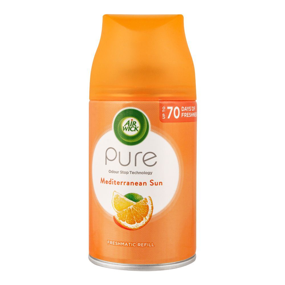 The Airwick Refill Pure Mediterranean Sun in a 250ml container offers a refreshing and invigorating scent inspired by the sunny Mediterranean. It fills your home with the essence of sun-kissed citrus fruits and aromatic herbs, creating a vibrant and uplifting atmosphere. Enjoy the Mediterranean sunshine in the comfort of your living space with this fragrant refill.