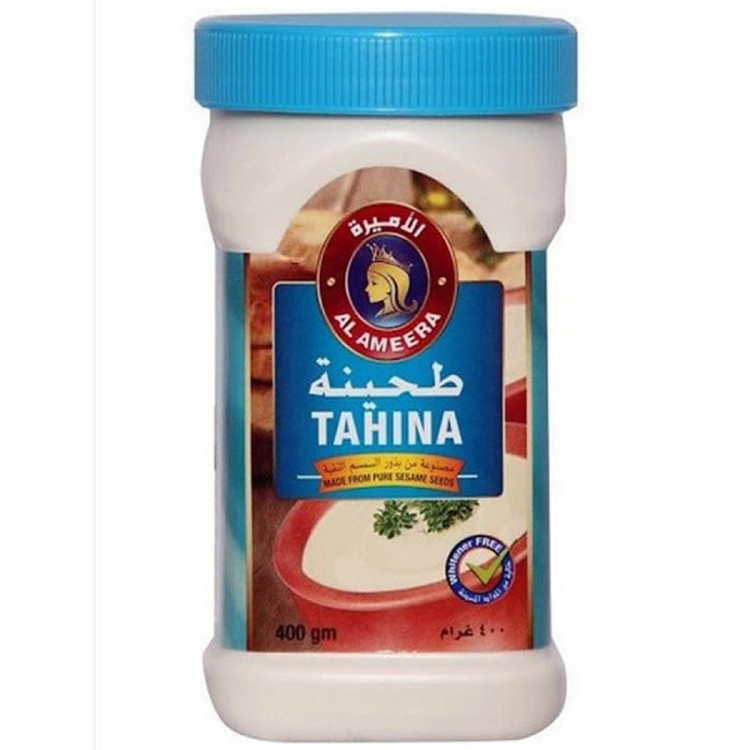 Al Ameera Tahina Sauce 400g Al Ameera Tahina Sauce in a 400g jar is a creamy and nutty tahina sauce perfect for a variety of culinary creations. Whether you're making traditional Middle Eastern dishes or experimenting with your own recipes, this tahina sauce adds depth and flavor.