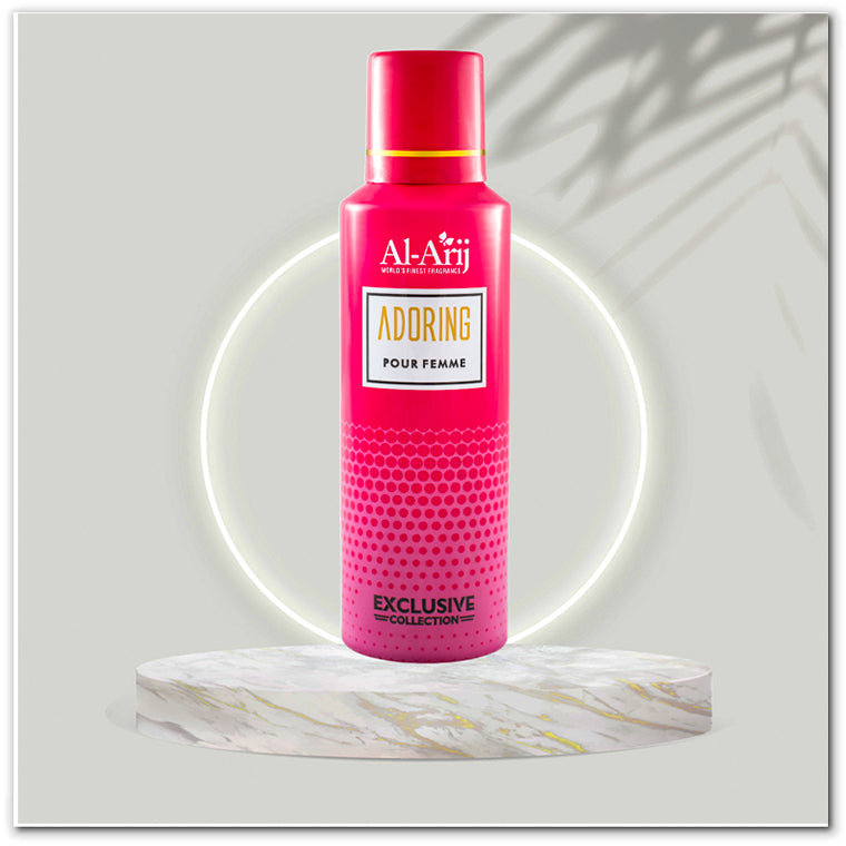 Al-Arij Body Spray Adoring is a scented body spray with a fragrance that inspires adoration. |