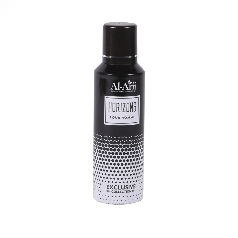 Al-Arij Body Spray Horizons is a scented body spray with a scent that evokes a sense of limitless possibilities. |