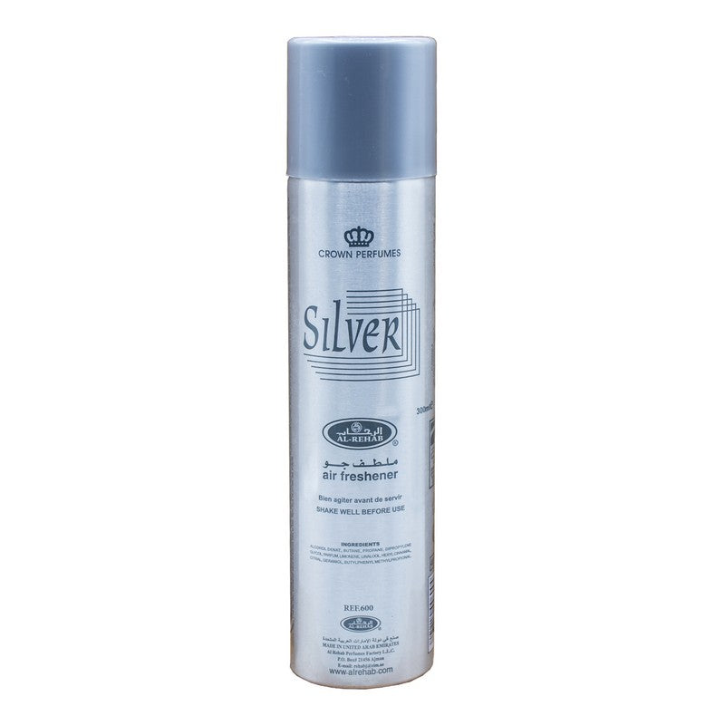 The Al-Rehab Air Freshener Silver 300 mL is a reliable, long-lasting solution to keep your home smelling fresh. It is formulated with notes of refreshing citrus and spicy mint, providing a pleasant fragrance for up to 8 hours.