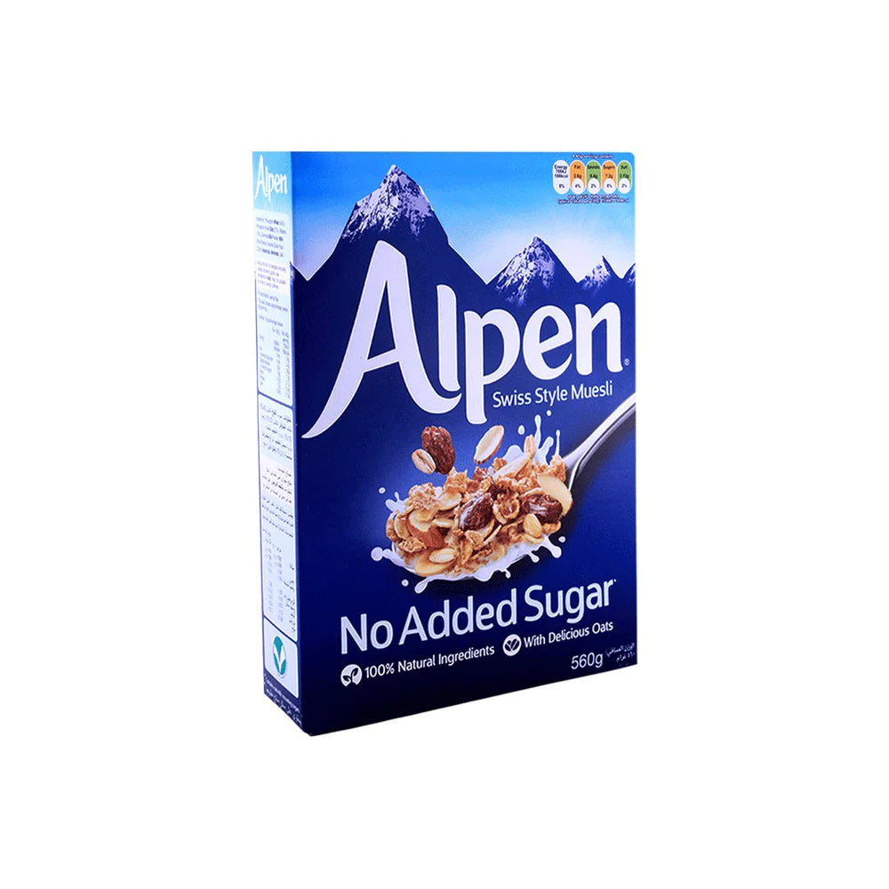 Weight: The Alpen No Added Sugar Swiss Style Muesli you mentioned comes in a 560g (grams) package. This is the total weight of the muesli inside the box.