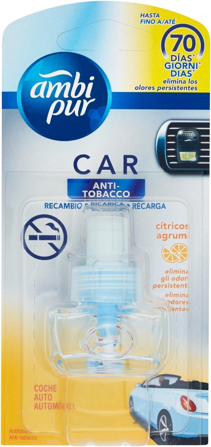 Eliminates tobacco odours: Say goodbye to unpleasant tobacco smells in your car with the Ambi Pur Air Freshener. It effectively neutralizes and eliminates the lingering odours, leaving your car smelling fresh and clean.