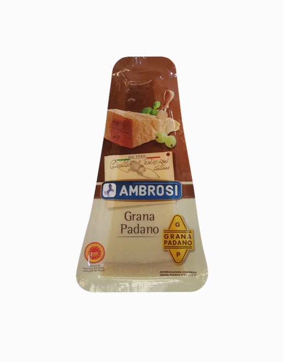 Ambrosi Grana Padano Parmesan Cheese is a renowned Italian cheese that falls under the Grana Padano PDO (Protected Designation of Origin) category. It is celebrated for its exceptional taste, texture, and quality, following strict production standards. Grana Padano is one of Italy's most famous and revered cheeses, known for its hard and granular texture. It is often considered a close relative to Parmigiano-Reggiano and shares similar characteristics.