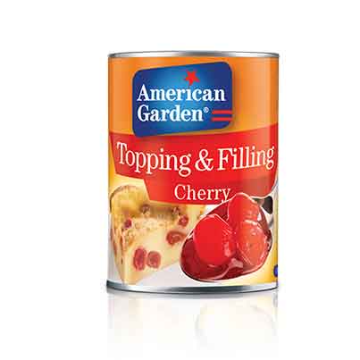 American Garden Topping & Filling in Cherry flavor can be used as a dessert topping or filling. |