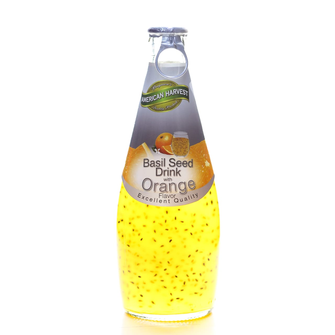 American Harvest Basil Seed Drink with Orange is a harmonious blend of nature's goodness and the zesty brightness of oranges. This 290ml bottle holds a unique and invigorating beverage that pairs the nutritional value of basil seeds with the vibrant taste of freshly squeezed oranges.