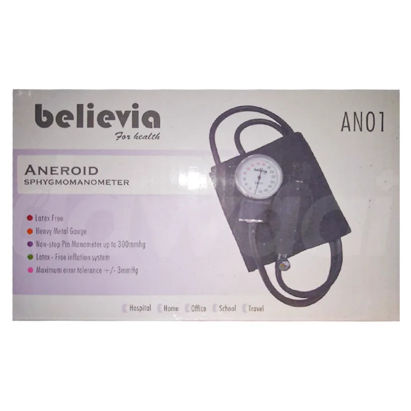 Aneroid Sphygmamonometer AN01 Believia: This is an aneroid sphygmomanometer, a device used for measuring blood pressure.