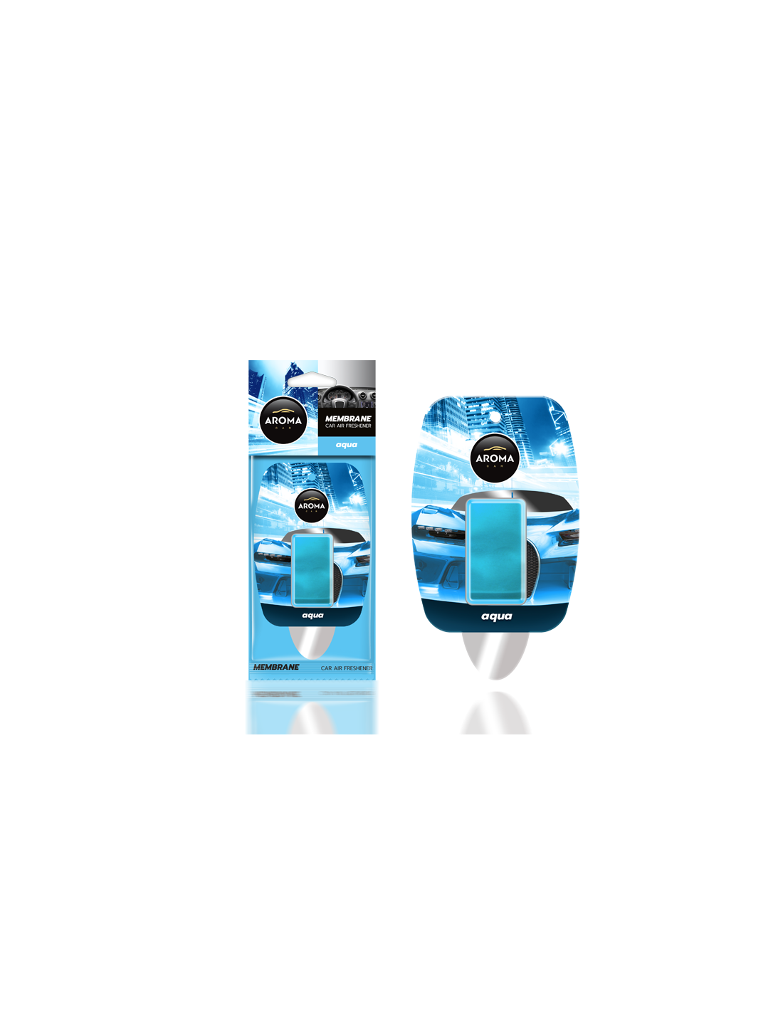 Car air freshener in the form of a small membrane container filled with liquid aroma Aqua. Intense aroma is released during the evaporation process. An innovative solution that allows a small number of membranes to gain strength of flavor.