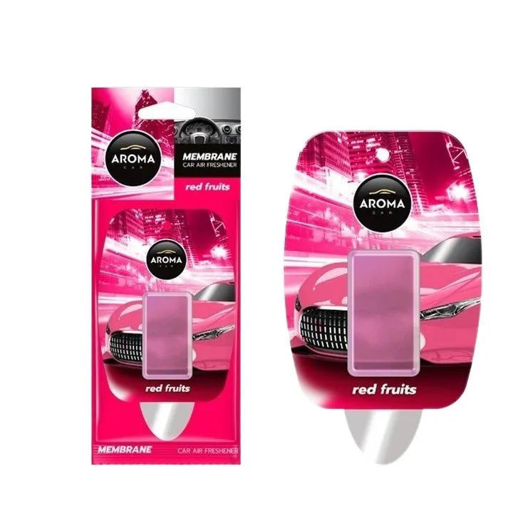 Car air freshener in the form of a small membrane container filled with the liquid aroma of red fruits. Intense aroma is released during the evaporation process. An innovative solution that allows a small number of membranes to gain strength of flavor.