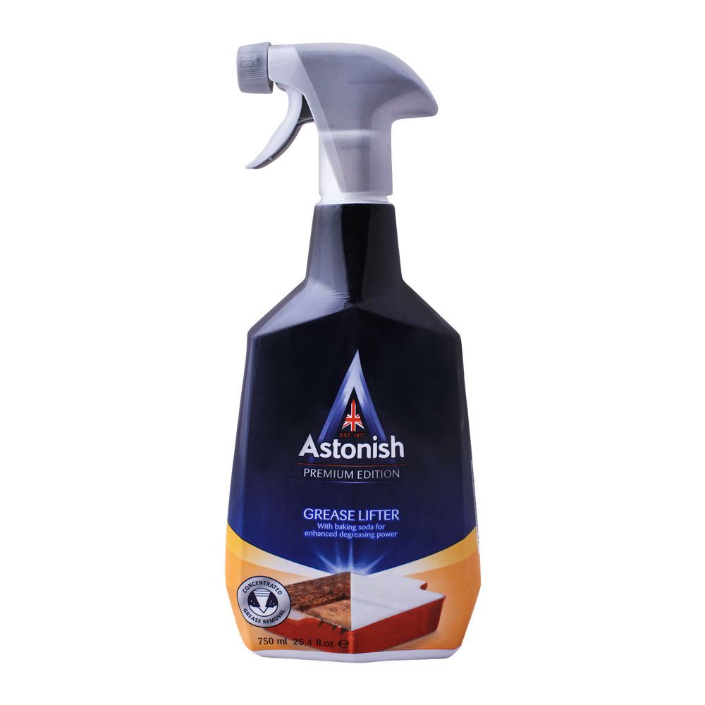 Astonish Premium Grease Lifter boasts an advanced formula specifically tailored for breaking down and removing tough grease and grime. It effectively tackles kitchen grease, oil stains, and baked-on residues. This cleaner is suitable for use on a variety of surfaces, including kitchen countertops, stovetops, range hoods, ovens, grills, and more. It's an all-in-one solution for keeping your kitchen and cooking appliances spotlessly clean.