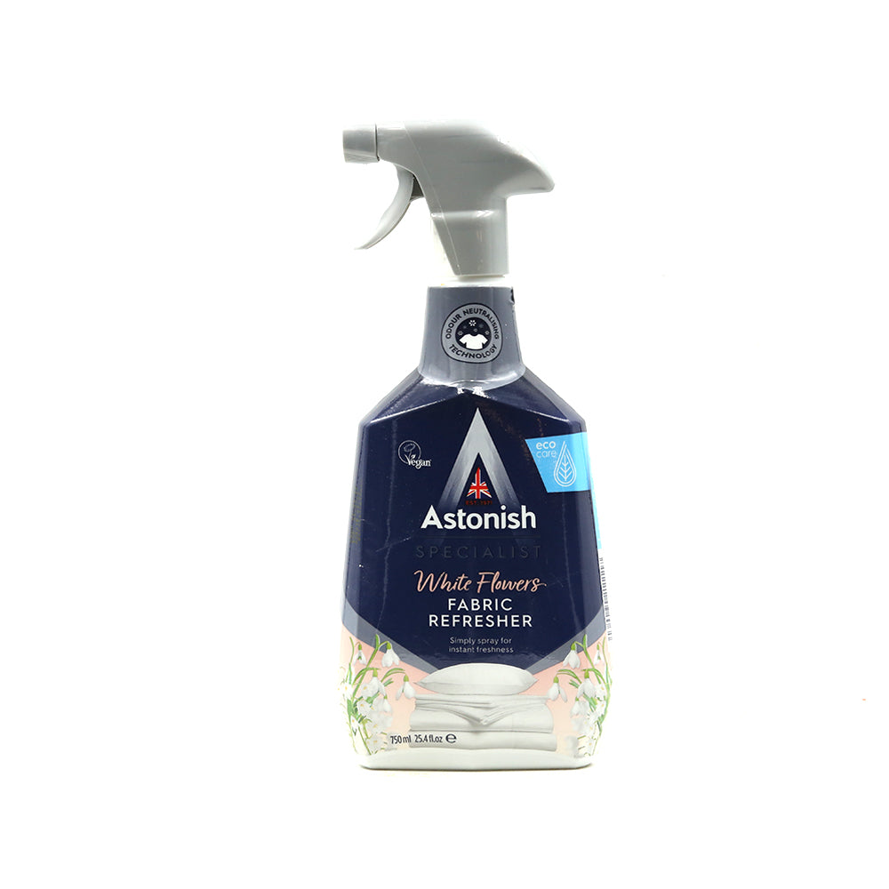 Astonish Fabric Refresher is formulated to refresh and revitalize fabrics by neutralizing odors that may be trapped in them. It can help eliminate musty, stale, or unpleasant odors from fabrics. This product leaves behind a white flowers fragrance that can linger on your fabrics, keeping them smelling fresh and inviting.