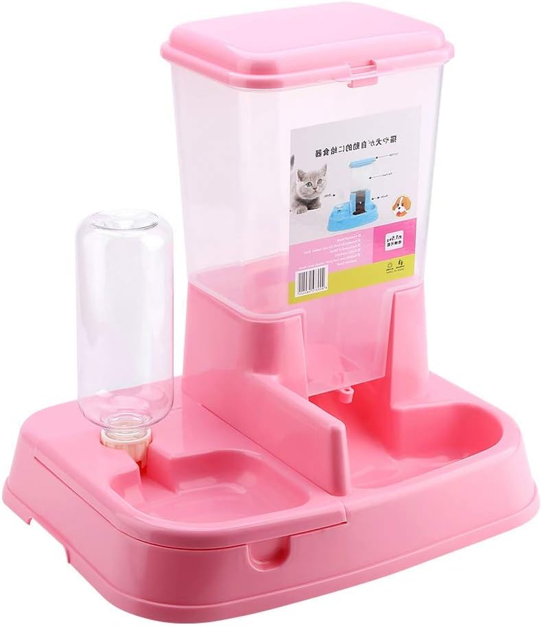 Easy to use and refill, a good helper for feeding your cats, dogs, rabbits and other small animals, Good toughness and durable for long time use, detachable and easy to clean. Thoughtful 2 in 1 design, includes a water bottle and food can, automatically feed you pets.