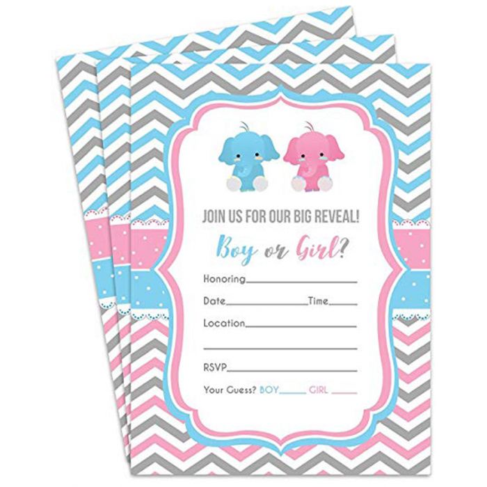 Includes self fill fields readings "for, date, time, location and RSVP details" Includes bright white, gum moistened envelopes (24lbs) Designed and printed in the USA, baby shower, its a boy, elephant, invites, invitations, baby party.