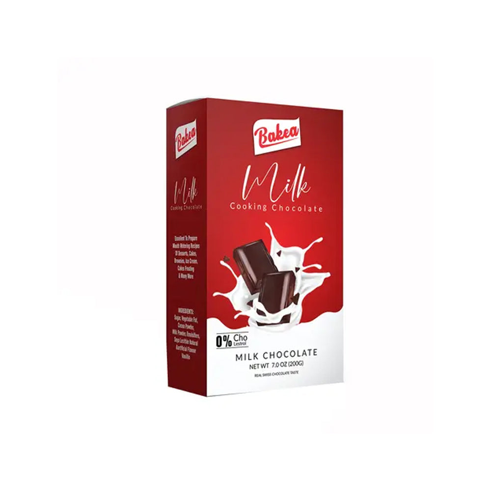 Bakea Cooking Milk Chocolate is designed for culinary creations. This 200-gram milk chocolate bar can be used for baking and cooking, providing a smooth and creamy chocolate flavor that enhances your recipes.