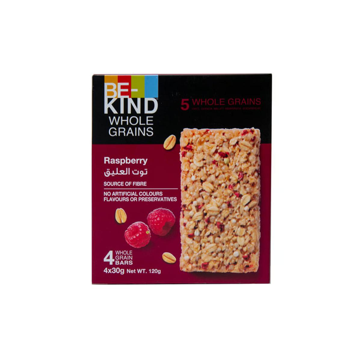 BE-KIND Whole Grains Raspberry bars come in a pack of 4 bars, each 30g, with a delightful raspberry flavor and the goodness of whole grains.