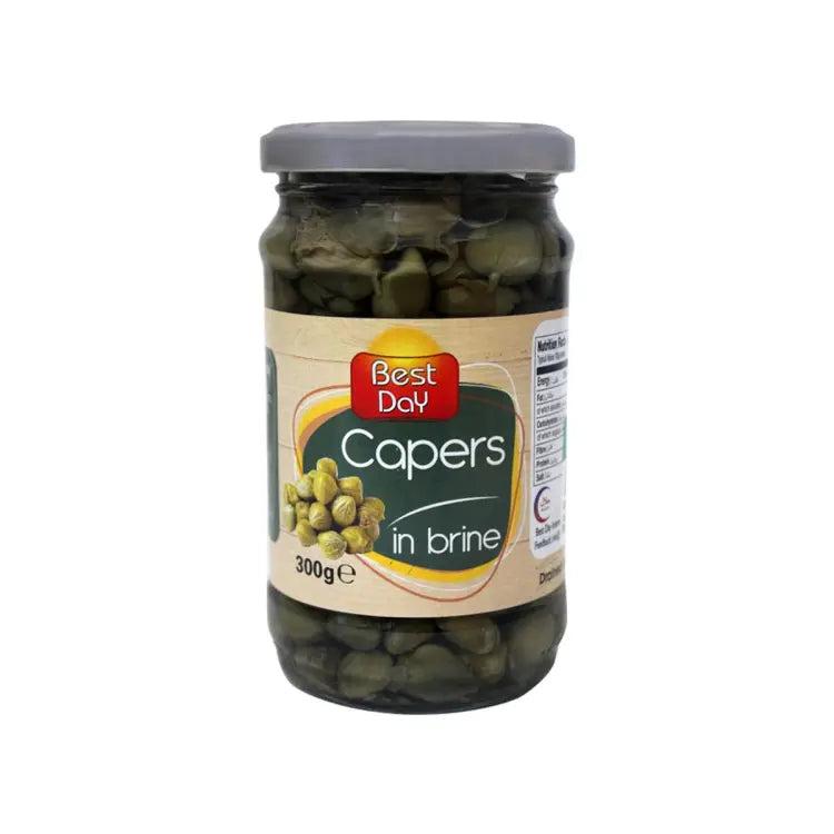 Introducing our premium product, Best Day Capers in Brine, weighing 300g. We take pride in offering you the finest quality capers, carefully selected and preserved in a brine solution. Our capers are sourced from the best regions known for their exceptional flavor and texture. With their tangy and slightly salty taste, our capers are the perfect addition to elevate your culinary creations. Whether you are a professional chef or a passionate home cook, our capers will enhance the flavors of your dishes, adding a unique and delightful twist. Packaged in a convenient 300g jar, our capers are ready to be used whenever inspiration strikes. Their versatility allows them to be used in a wide range of recipes, from salads and sauces to pasta dishes and seafood delicacies. We guarantee the utmost freshness and quality in every jar of Best Day Capers in Brine. Our commitment to excellence ensures that you will experience the true essence of capers in every bite. Indulge in the exquisite taste of our Best Day Capers in Brine and elevate your culinary creations to new heights.