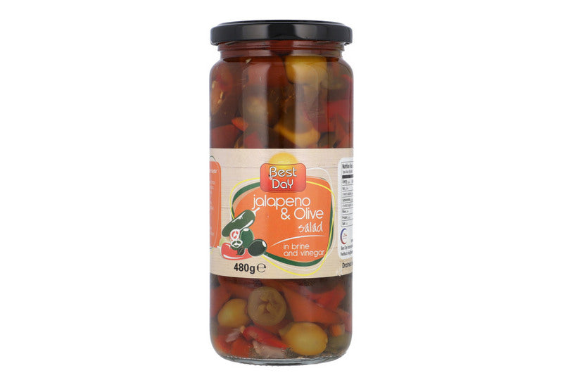 The Best Day Jalapeno & Olive Salad is a true masterpiece in the world of culinary delights. Weighing a generous 480g, this salad is packed with an explosion of flavors that will leave you craving for more. The combination of fiery jalapenos and tangy olives creates a harmonious blend that dances on your taste buds. The jalapenos bring a fiery zest that adds a kick to every bite, while the olives provide a rich and tangy flavor that perfectly balances out the heat. Every aspect of this salad has been carefully crafted with utmost care and attention to detail. From the selection of the freshest ingredients to the precise chopping and mixing techniques, no detail has been overlooked. This dedication to quality is evident in every mouthful. Whether you choose to enjoy this salad as a standalone dish or as a delightful accompaniment to your main course, it is guaranteed to elevate your dining experience. The Best Day Jalapeno & Olive Salad adds a burst of flavor and excitement to any meal, making it the perfect addition to any occasion. Indulge in this culinary masterpiece and savor the best of flavors. Each bite is a journey of taste sensations that will leave you wanting more. So treat yourself to the Best Day Jalapeno & Olive Salad and experience the true joy of exceptional quality and flavors.