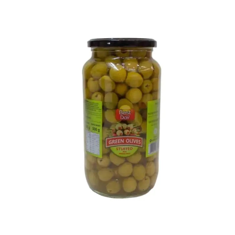 Premium Quality: We pride ourselves on sourcing the finest green olives, ensuring that every bite is a testament to Mediterranean excellence. These olives are harvested with care to maintain their freshness and authenticity.Irresistible Fillings: Best Day Olives are meticulously stuffed with a variety of delectable fillings, such as succulent red peppers, creamy feta cheese, or zesty garlic. Each bite is a delightful surprise of flavor.Versatile Usage: These green olives are incredibly versatile, making them a perfect addition to your appetizers, antipasto platters, salads, or as a standalone snack that's sure to impress your guests.Mediterranean Flair: Immerse your senses in the flavors of the Mediterranean with every olive. The combination of briny green olives and flavorful fillings is a true culinary delight.Nutrient-Rich Indulgence: While indulging in the exquisite taste of these olives, you're also enjoying the health benefits they offer, including healthy fats and antioxidants.Generous Quantity: With 930g of stuffed green olives in each jar, you have an abundant supply to entertain guests or enjoy leisurely over multiple meals.