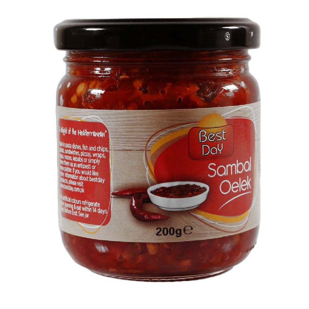 BEST DAY Sauce Sambal Oelek is an Indonesian condiment containing chili peppers, garlic, and salt. It has a spicy, savory flavour and can be used as a condiment, dip, or an ingredient in a variety of dishes.
