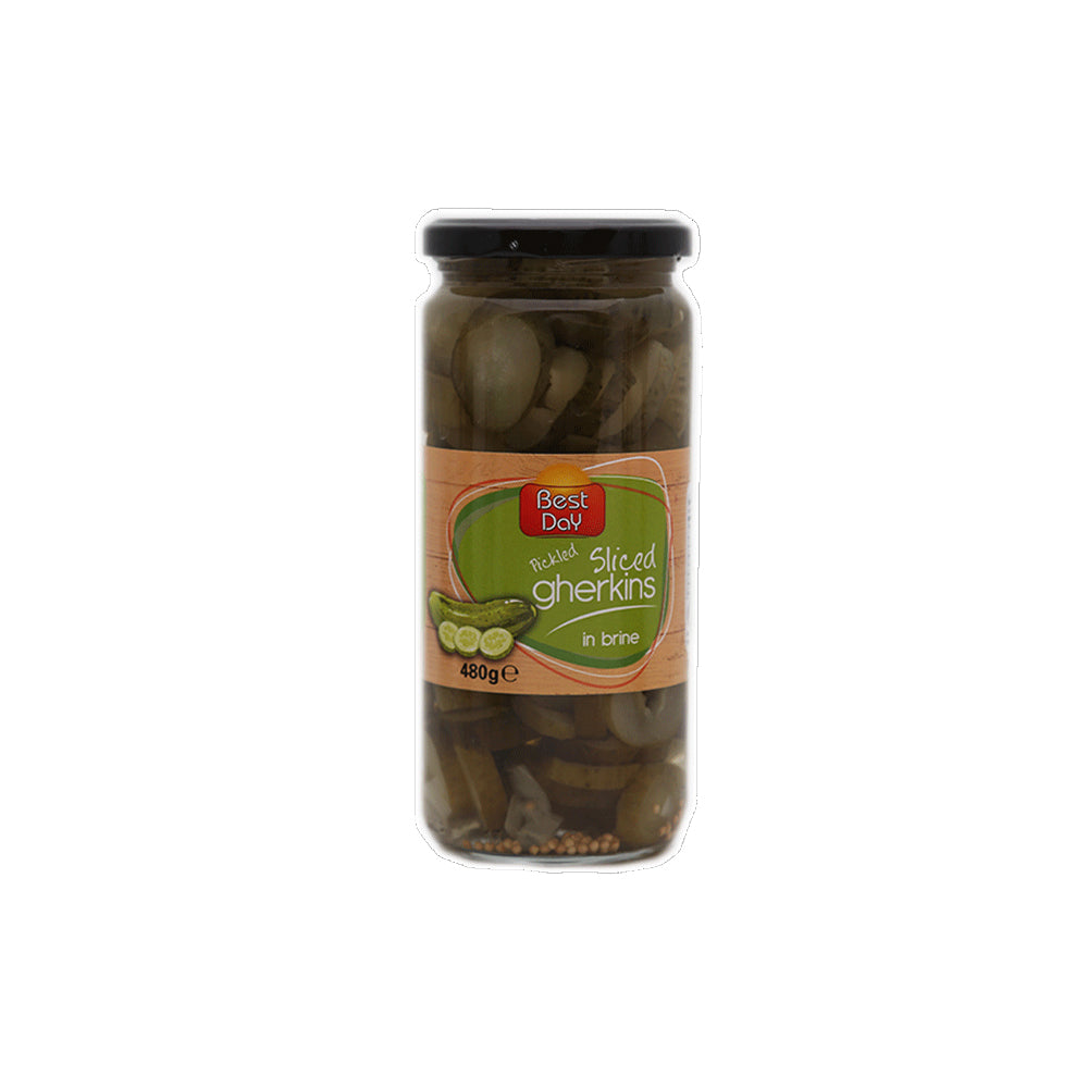 Best Day Sliced Gherkins in Brine offer you the pure, crisp taste of gherkins. This 480g jar is perfect for those who prefer their gherkins without additional flavorings, ideal for snacking or garnishing.