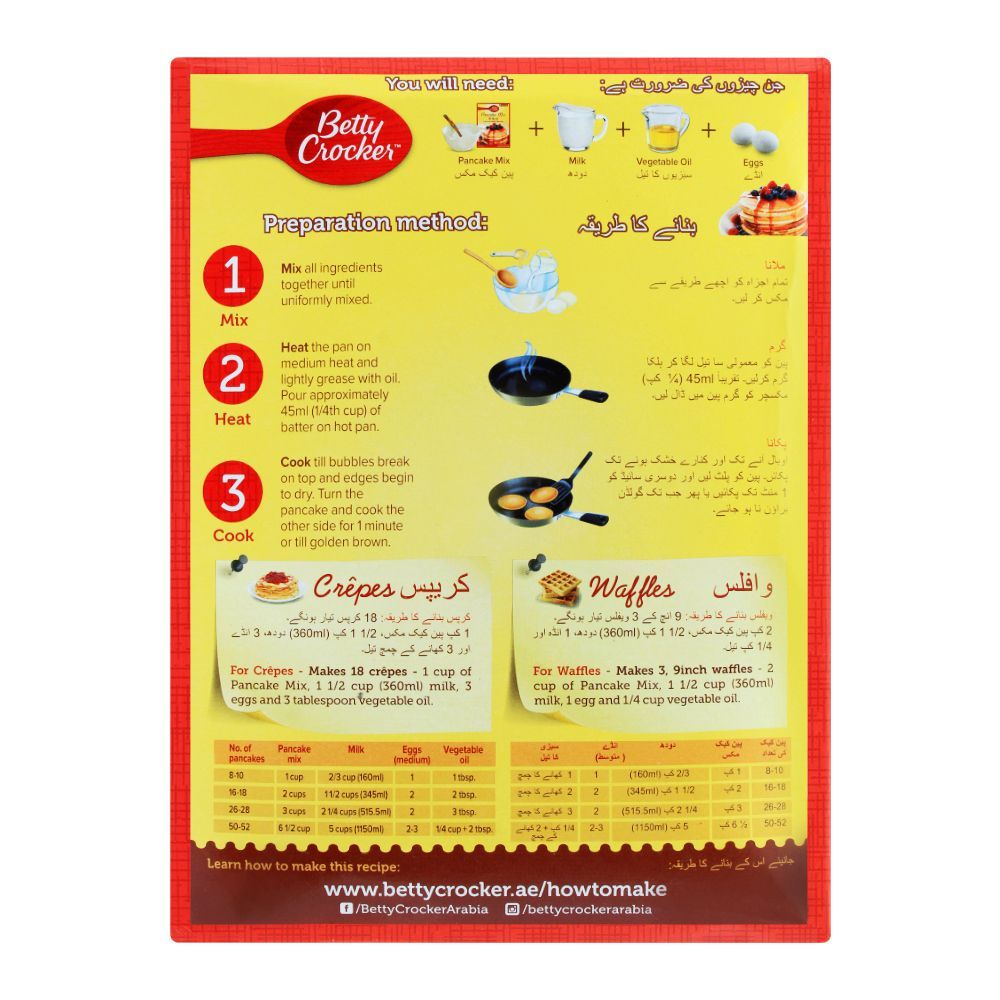 The Betty Crocker Pancake Mix in Buttermilk flavor, weighing 907g. This premium quality mix is perfect for creating fluffy and delicious pancakes that are sure to satisfy your taste buds. With its easy-to-follow instructions, you can whip up a batch of pancakes in no time. The mix is made with high-quality ingredients, ensuring a consistent and delightful taste every time. Whether you're making breakfast for your family or hosting a brunch party, the Betty Crocker Pancake Mix in Buttermilk flavor is a must-have in your pantry. Enjoy the convenience and deliciousness of this classic pancake mix today.