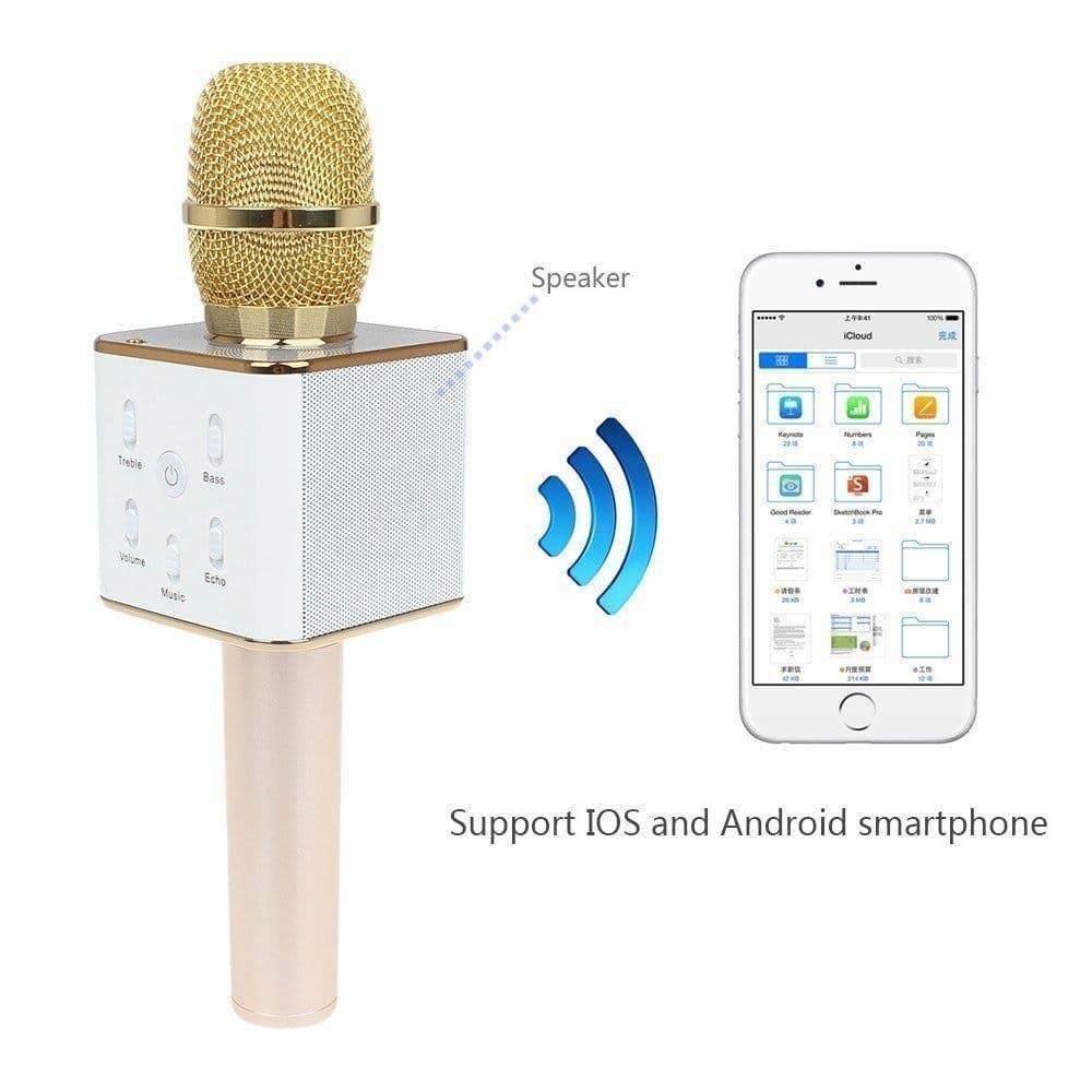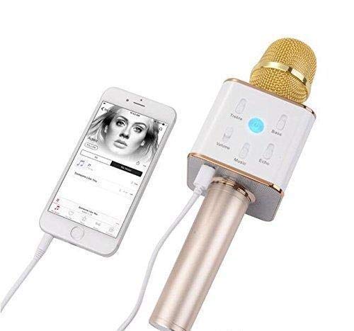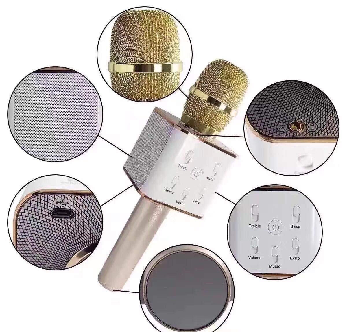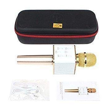 A handheld condenser microphone with a portable mini home KTV player ; Ideal for music fancier, allows you to sing and record you voice anywhere, such as in car travelling, BBQ, family dinner and outdoor party so on; Fit for singing, instrument recording, interviews, podcasting, etc. Can be also used as portable bluetooth speaker. When computer turned on, the USB interface to connect to a computer will be able to charge for the microphone until the red battery indicator light turns off by the state, charging the end Mini pocket microphone: The microphone is a great size and fits in hand well. The sound is nice ,clean, you can use it for pretty much for singing ,talking and even playing music through it Great for bluetooth speaker, karaoke singing, car stereo, instrument recording, interviews, podcasting, . Ideal for music fancier, allows you to sing and record you voice anywhere, such as in car travelling, bbq, family dinner and outdoor party so on. Featured with the Bluetooth and the 3.5mm audio jack, allow you wirelessly or using the audio cable(Not included) to connect the unit effortlessly to your smart phones.