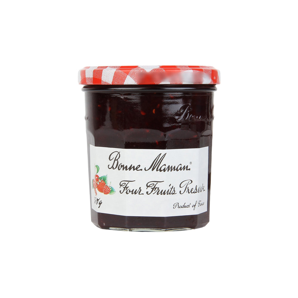Bonne Maman Four Fruits Preserve is a harmonious blend of strawberries, cherries, redcurrants, and raspberries. This preserve offers a balanced and fruity taste, ideal for adding a burst of flavor to your breakfast.