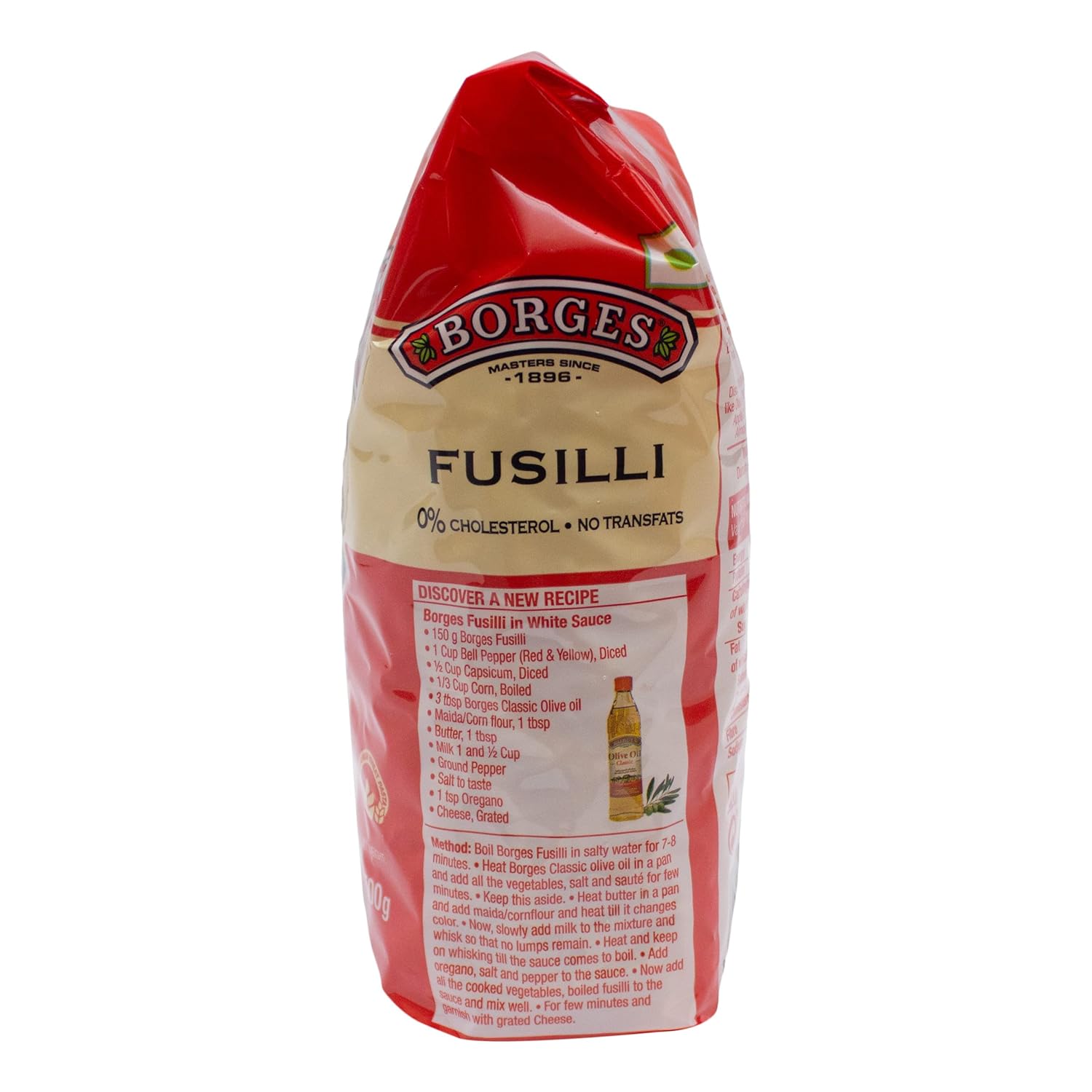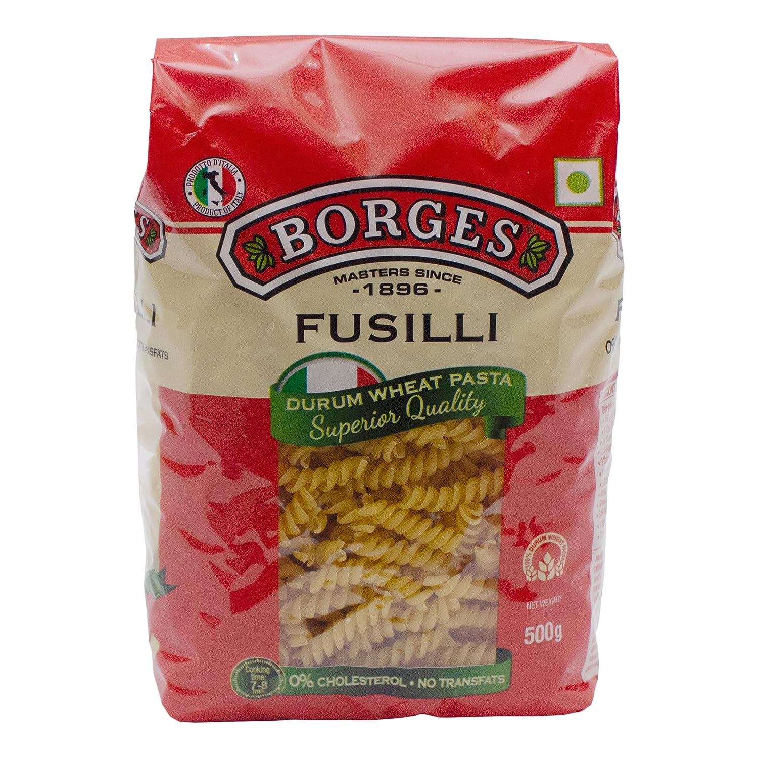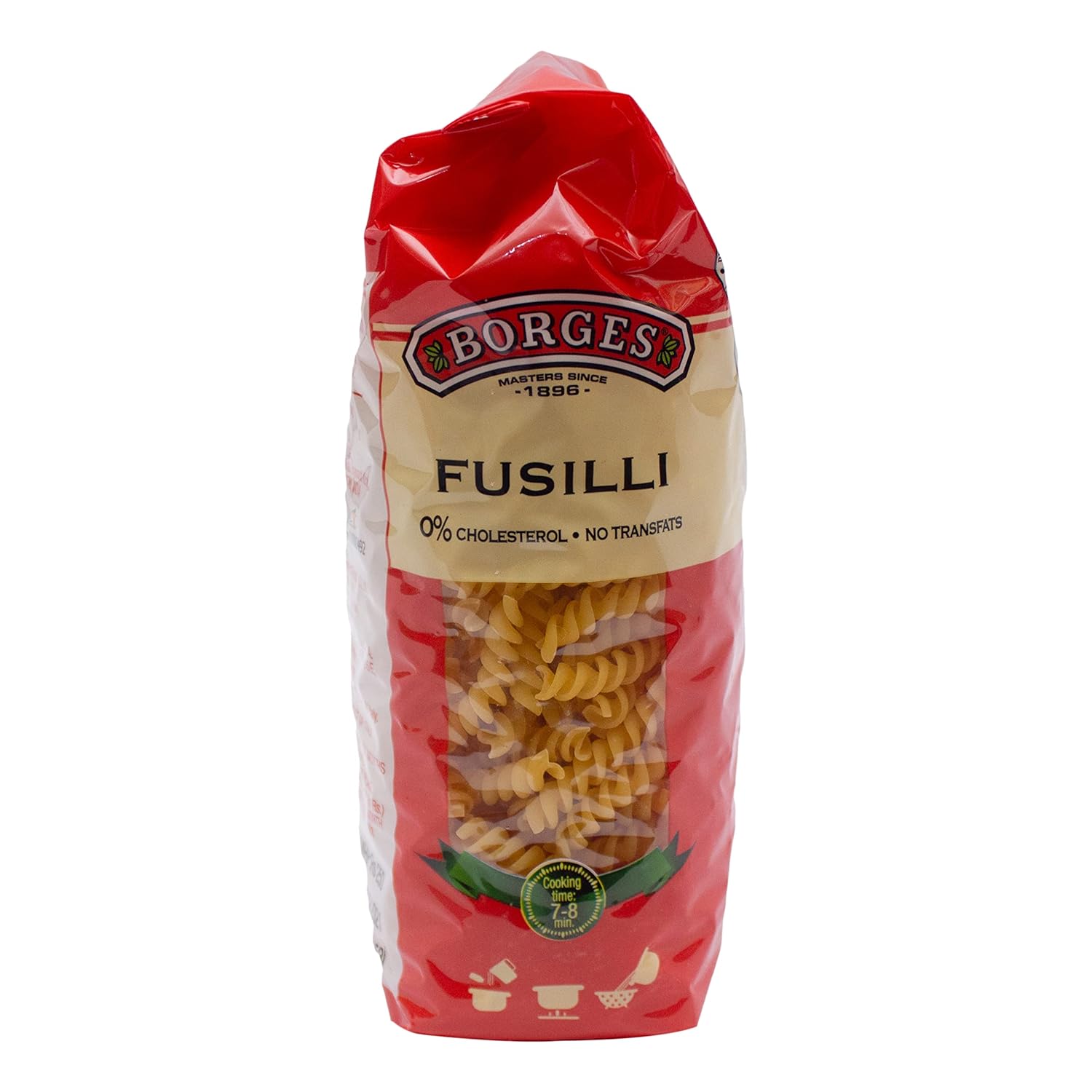 Durum Wheat Pasta: Borges Fusilli pasta is made from durum wheat semolina, which is a hard variety of wheat known for its high protein content and superior pasta-making properties. Durum wheat pasta retains its shape well during cooking and has a firm texture.