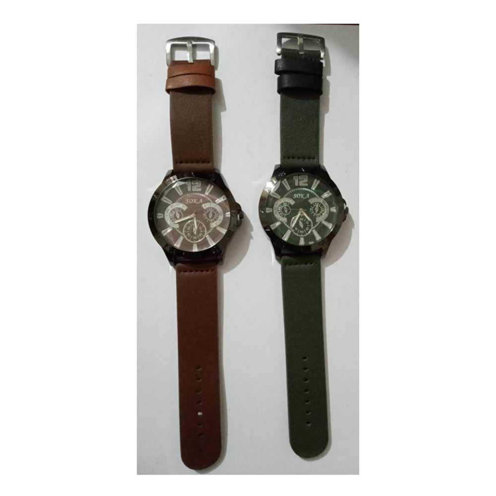 Boys Stylish Watch With High Quality Green/Brown Straps Wrist Watch For Boys High Quality Watch Pack Of 2