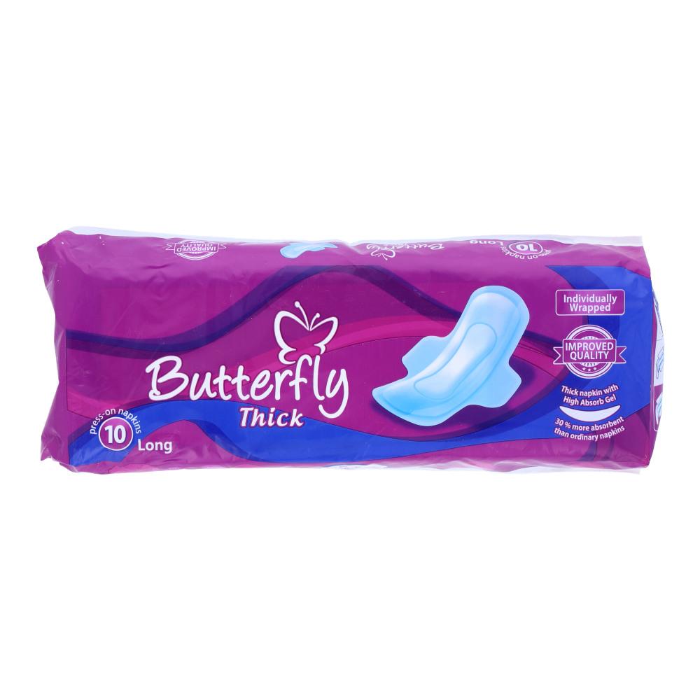 BUTTERFLY SANITARY NAPKINS provide excellent protection in a comfortable and discreet design. This 10-pack is ideal for larger flows and features a secure, wrapped design for maximum hygiene. With its ultra-absorbent core and soft, breathable cover, you can trust in.