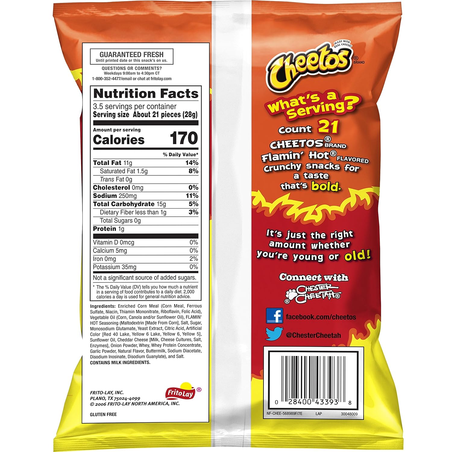 The Cheetos Chips Crunchy, now available in a travel-friendly 3.5oz size, perfect for those who can't get enough of its irresistible goodness. Packed with a lively crunch and enriched with the mouthwatering Cheetos cheese flavor, these chips have won the hearts of snack enthusiasts worldwide. Whether you're looking for a quick bite at work, a satisfying snack during outdoor activities, or something to enjoy during your downtime, these Cheetos Chips are the ultimate choice. Grab a bag today and prepare to embark on a delightful snacking journey that will leave you wanting more!