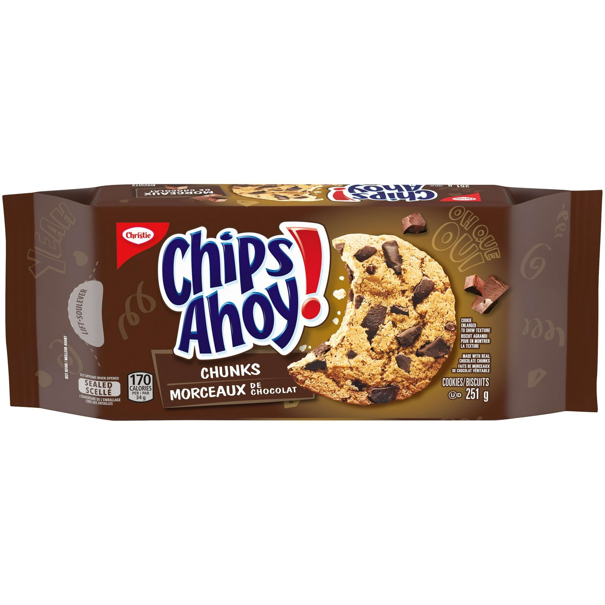 Chips Ahoy! Chunks Chocolate-Chip Cookies are a classic favorite. This 251g pack is filled with delicious, chunky chocolate chip cookies that are perfect for snacking or dunking in milk.