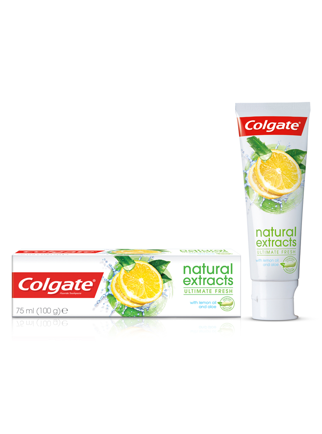 The revolutionary Colgate Natural Extracts Ultimate Fresh Paste 75ml, the ultimate solution for your oral hygiene needs. This groundbreaking toothpaste is specially formulated with natural extracts to provide you with an unparalleled fresh and clean feeling that lasts all day. Experience the power of nature with our unique blend of carefully selected ingredients. The Colgate Natural Extracts Ultimate Fresh Paste harnesses the natural cleansing properties of mint and eucalyptus extracts, delivering a refreshing burst of flavor that leaves your breath feeling invigorated and revitalized. Not only does this toothpaste provide an exceptional clean, but it also goes beyond the surface to protect and strengthen your teeth. Enriched with fluoride, it helps to prevent cavities and maintain strong enamel, ensuring your smile stays healthy and beautiful. Say goodbye to artificial ingredients and embrace the goodness of nature. The Colgate Natural Extracts Ultimate Fresh Paste is free from harsh chemicals, parabens, and artificial sweeteners, making it a safe and gentle choice for the whole family. You can trust that every brush will be a refreshing and wholesome experience. With its convenient 75ml size, this toothpaste is perfect for everyday use at home or on the go. Its compact design makes it easy to pack in your travel bag or keep in your bathroom cabinet, ensuring you never compromise on your oral care routine. Join the millions of satisfied customers who have made Colgate their trusted oral care brand. Experience the ultimate freshness and protection with Colgate Natural Extracts Ultimate Fresh Paste 75ml. Elevate your oral care routine to a whole new level and embrace the power of nature for a healthier, more radiant smile.