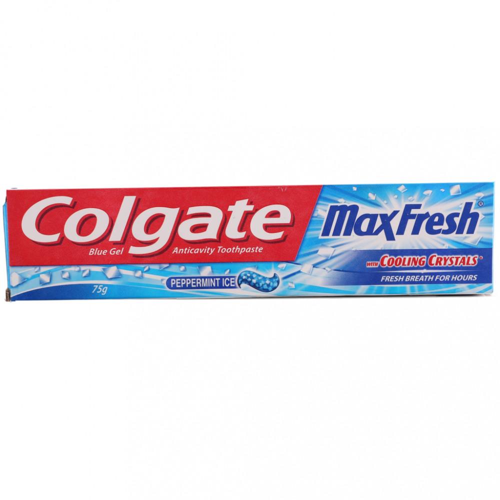 Colgate Max Fresh Peppermint Ice Max fresh with cooling crystals Colgate max fresh Peppermint Ice gives you the confidence to connect with its cooling crystals. They dissolve in your mouth, setting off an icy wave of minty coolness Contains menthol.