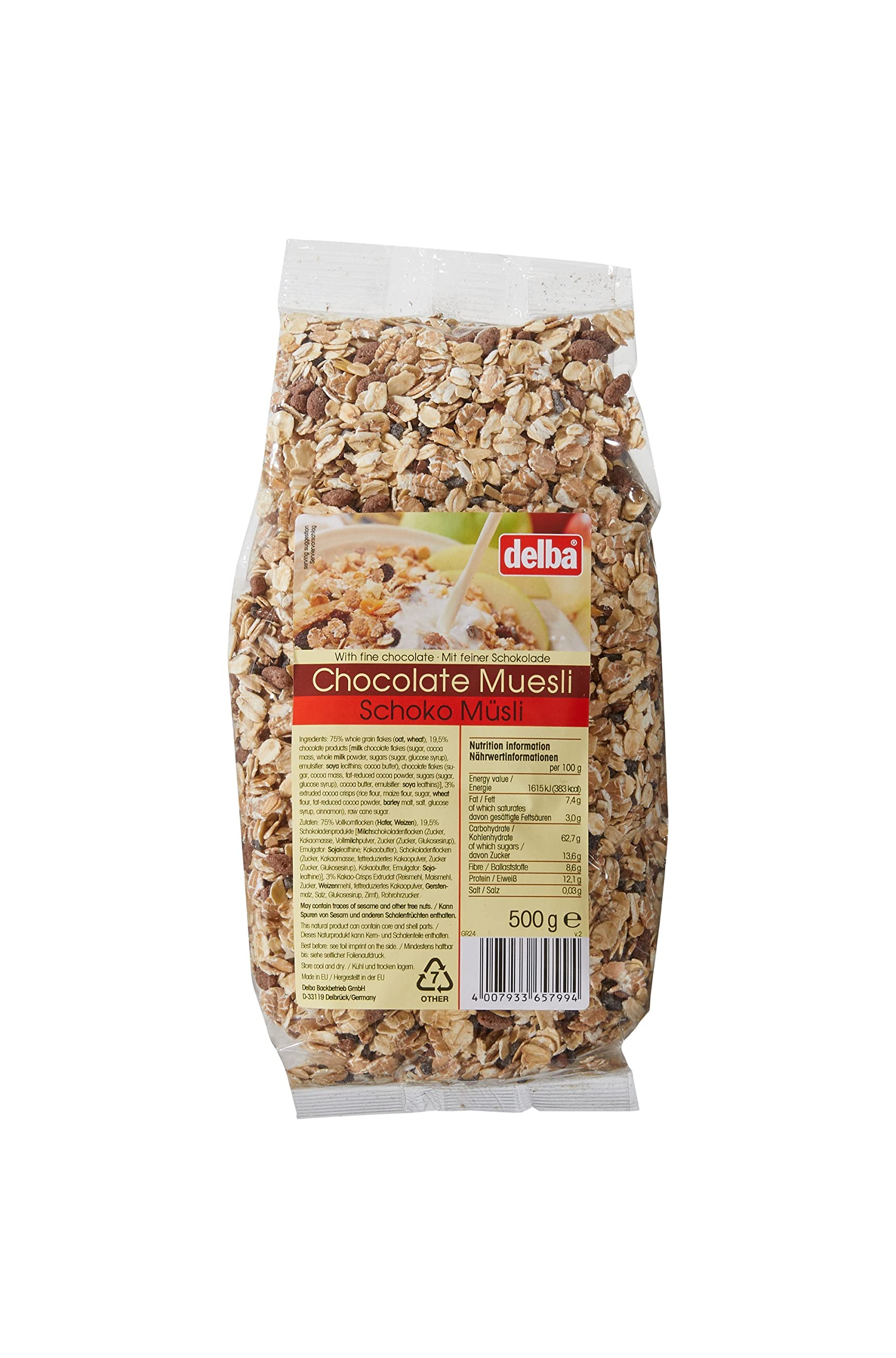 Delba Muesli Chocolate is a delicious and satisfying breakfast cereal that features a blend of whole grains, nuts, seeds, and chocolate pieces. It's designed to provide a balanced and enjoyable start to your day, making it a popular choice for those who crave a touch of chocolate in their morning routine. This muesli is infused with the rich and sweet taste of chocolate. Chocolate pieces or chocolate-flavored components are included in the mix, providing a delightful chocolatey experience.