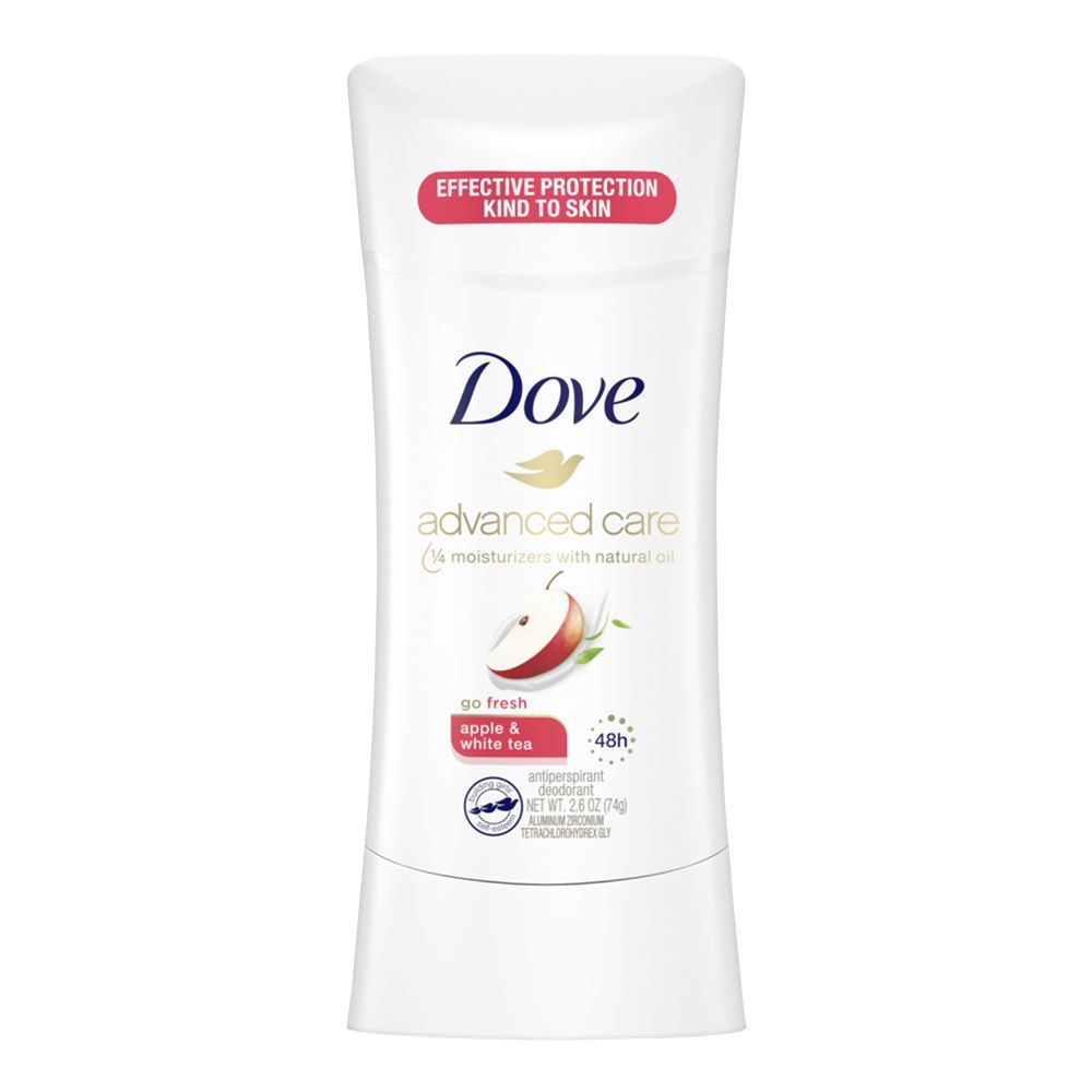 Introducing the Dove Advanced Care Go Fresh Antiperspirant in the refreshing scent of Apple & White Tea 74g . This innovative antiperspirant is designed to provide 48-hour protection against sweat and odor, ensuring you stay fresh and confident throughout the day. What sets this antiperspirant apart is its unique formula, which includes Dove's signature ¼ moisturizers and Nutrium Moisture technology. These ingredients work together to nourish and care for your underarms, leaving them feeling soft, smooth, and healthy. The antiperspirant glides on effortlessly, thanks to its smooth texture, and dries quickly, so you can get dressed without worrying about any residue or stains on your clothing. Its non-irritating formula is gentle on the skin, making it suitable for all skin types, including sensitive skin. In addition to its exceptional performance, the Dove Advanced Care Go Fresh Antiperspirant also boasts a delightful fragrance of Apple & White Tea. This invigorating scent will leave you feeling refreshed and revitalized, making it the perfect choice for those who want to start their day on a positive note. Whether you're heading to the office, hitting the gym, or going out for a night on the town, you can trust Dove Advanced Care Go Fresh Antiperspirant to keep you dry, odor-free, and feeling confident. With its long-lasting protection and nourishing care, this antiperspirant is the ultimate solution for underarm care. Say goodbye to sweat and hello to freshness with Dove Advanced Care Go Fresh Antiperspirant in Apple & White Tea.