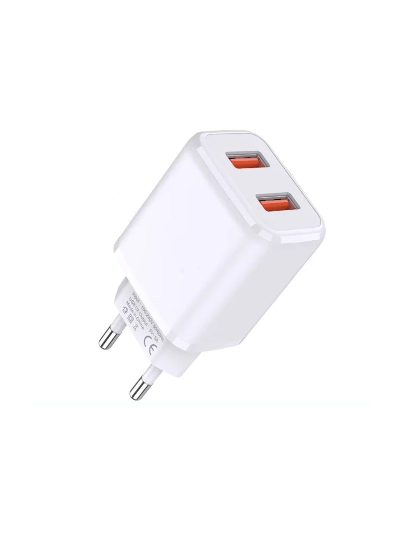 The "Dual USB Output Fast Charging Adapter FC-88" is a versatile and efficient charging accessory designed to rapidly charge multiple devices simultaneously. This adapter is equipped with two USB output ports, allowing you to charge two devices at the same time. Here's a detailed description of the Dual USB Output Fast Charging Adapter FC-88:
