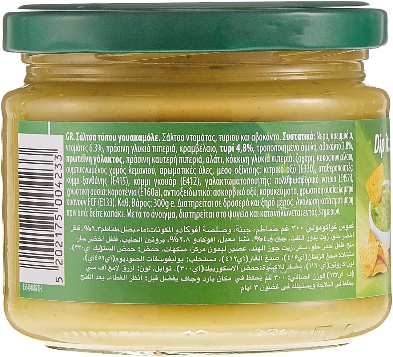 Delight your taste buds with El Sabor Salsa Dip Guacamole, an exquisite fusion of flavors inspired by the vibrant Mexican cuisine! Crafted with love, this 300g jar of guacamole combines the smoothness of ripe avocados with a zesty blend of spices, creating a dip that is both creamy and tangy. Whether you're hosting a party or craving a quick snack, this versatile dip pairs well with tacos, fajitas, or as a spread on sandwiches. Perfectly balanced and packed with natural goodness, El Sabor Salsa Dip Guacamole is a must-have for those seeking an authentic and gratifying culinary experience!