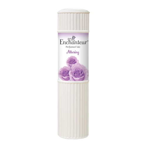 ENCHANTEUR Alluring Perfumed Talc with its seductive fragrance of Rose and Iris enhanced with creamy Vanilla to give your skin tender loving care.