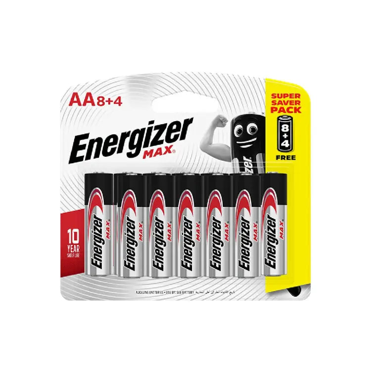 Energizer Max AA Batteries 8+4 Pack is a reliable and long-lasting power source for your cameras and other electronic devices. These non-rechargeable Batteries have not specified charge time and come in a pack of 8+4. Energizer is a well-known brand in the battery industry, ensuring quality and performance. These Batteries are perfect for your cameras, camera accessories, and other battery-powered devices. Don't let a dead battery ruin your day, choose Energizer Max AA Batteries for a reliable and long-lasting power source.​