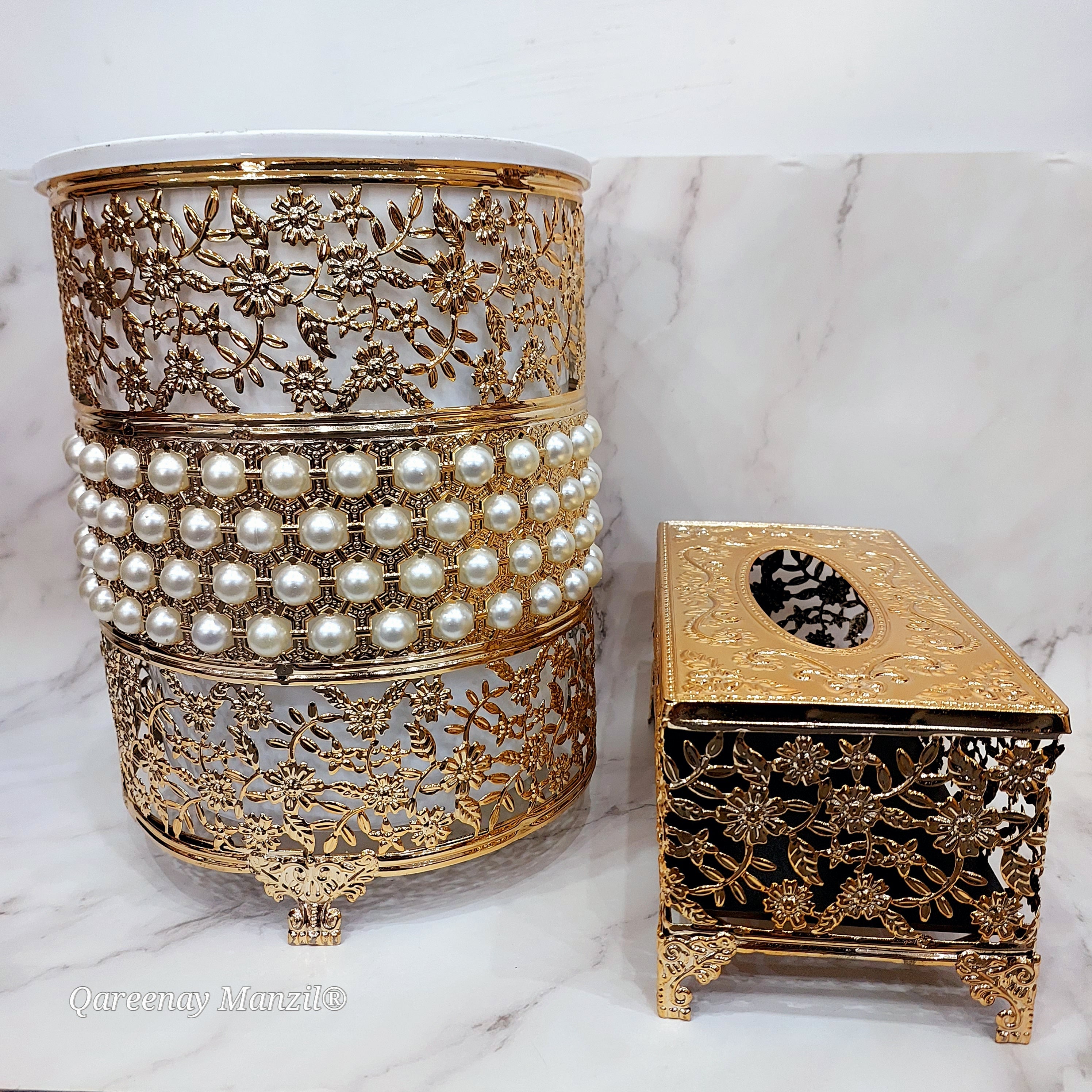 - A Fancy Waste Bin and Tissue Box Set in a golden finish can make for an excellent and thoughtful gift for special occasions, such as housewarmings, weddings, or anniversaries. It's a practical and decorative gift choice.