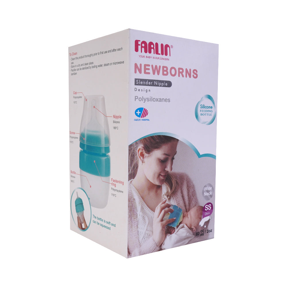 Newborn silicone feeding Bottle can be used as a baby water bottle, juice feeding bottle, breast milk storage bottle, and medicine feeder bottle. Its Slender shape nipple cab is easily put into the babys mouth and helps babies who have trouble with feeding to swallow easily.