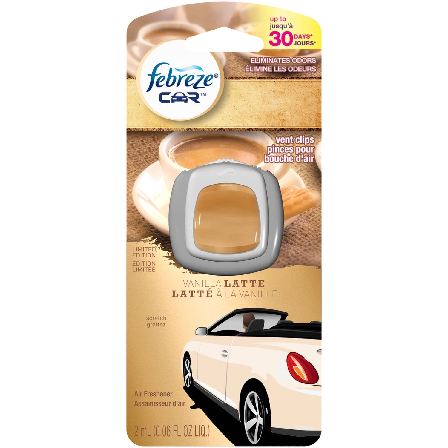 Febreze Car Freshener Vent Clip in Vanilla is a car air freshener product designed to provide a pleasant and inviting vanilla fragrance inside your vehicle. This vent clip is intended to eliminate odors and create a more enjoyable and aromatic driving experience.
