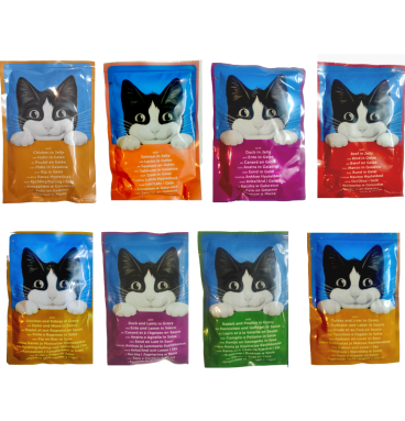 The flavours in this product are also part of our Pick ‘n’ Mix selection; click below to create your personalised bundle of favourites!, Mouth-watering tastes and textures, it really does taste as good as it looks!, Packed with essential vitamins and minerals., A great way to keep your cat nourished through complete and balanced nutrition., Delicious flavours including Chicken in jelly, Beef in jelly, Salmon in jelly, Duck in jelly, Turkey & Liver in Gravy, Chicken & Kidney in Gravy, Duck & Lamb in Gravy, Rabbit & Poultry in Gravy.
