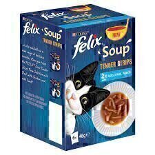 FELIX Soup Tender Strips is an irresistible range of exciting recipes for your cat. Your little rascal will love lapping up the delicious broth and getting his teeth stuck into the mouth-watering chunks cut into long thin strips. Each ready-to-pour pouch of Felix Soup Tender Strips is the perfect size to fuel your cat’s mischief at any time of day and, with no added artificial colorants, flavorings, or preservatives, you can feel good about serving it. Add some delicious variety to your cat’s day with the irresistible FELIX Soup Tender Strips recipes, the perfect complement to their diet. Made with quality ingredients NEW FELIX Soup Tender Strips.