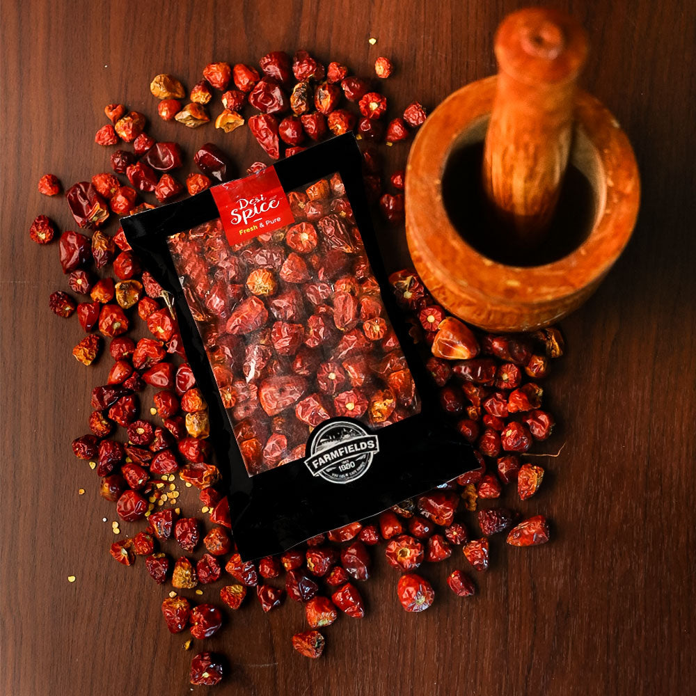 Experience the superior taste of FARM FIELDS DESI SAABAT LAL MIRCH WHOLE 100GM. Carefully selected lal mirch is professionally processed to preserve its natural aroma and flavour, making it a superb cooking ingredient. Enjoy the delicious spice with your favourite...