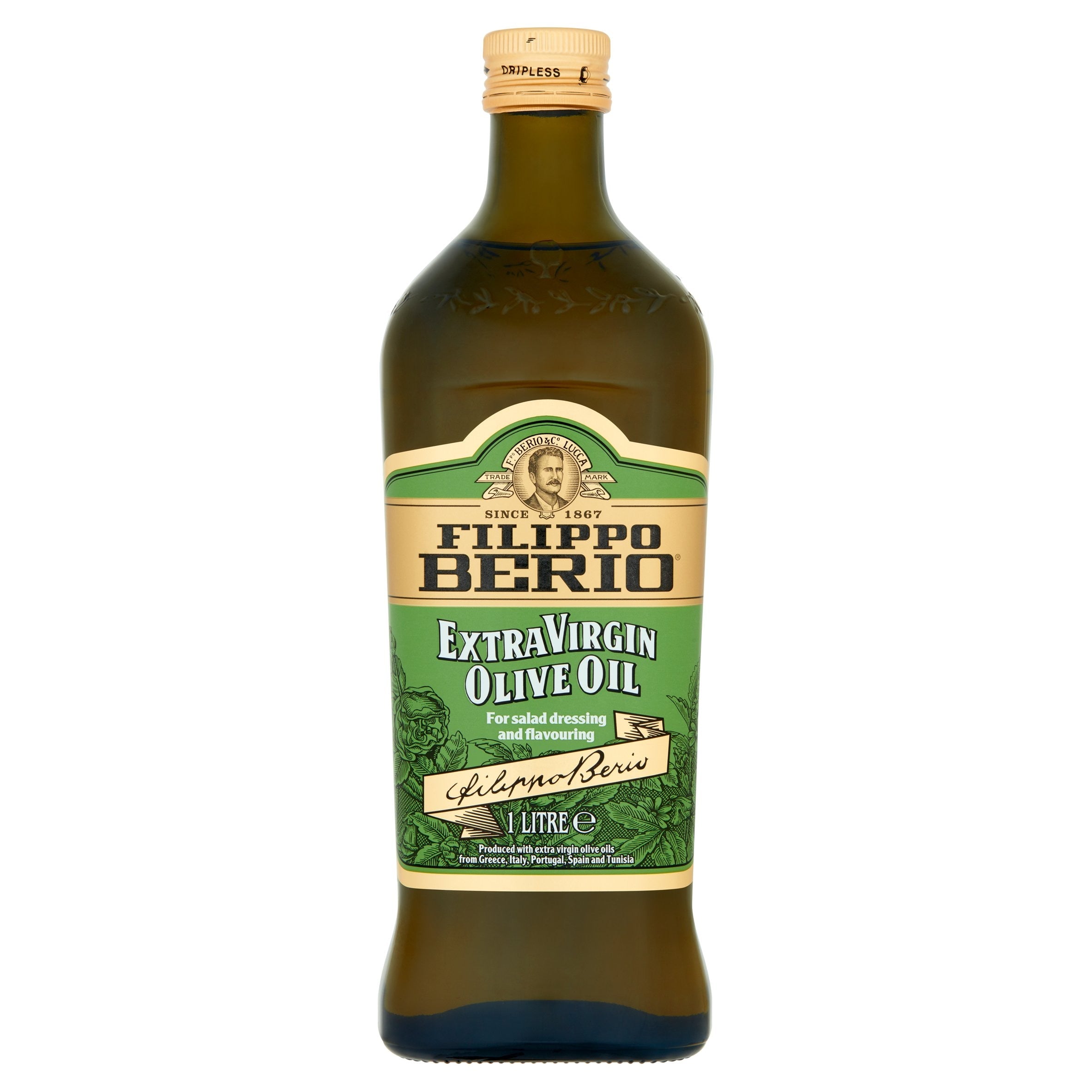 Filippo Berio Extra Virgin Olive Oil 1L: Filippo Berio Extra Virgin Olive Oil in a 1-liter bottle offers a larger quantity of their high-quality, cold-pressed olive oil for your culinary needs.